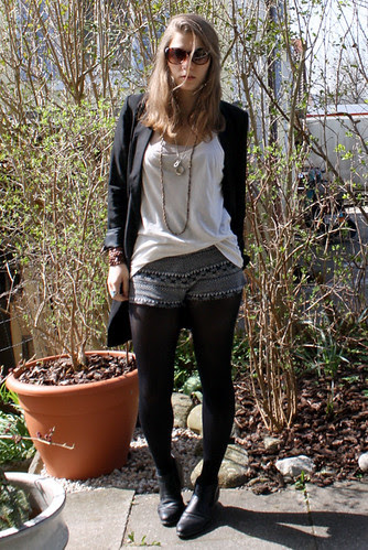 h&m tank top, topshop shorts, h&m trend blazer, coat and shoes from local shops, watch Swatch Colour Codes